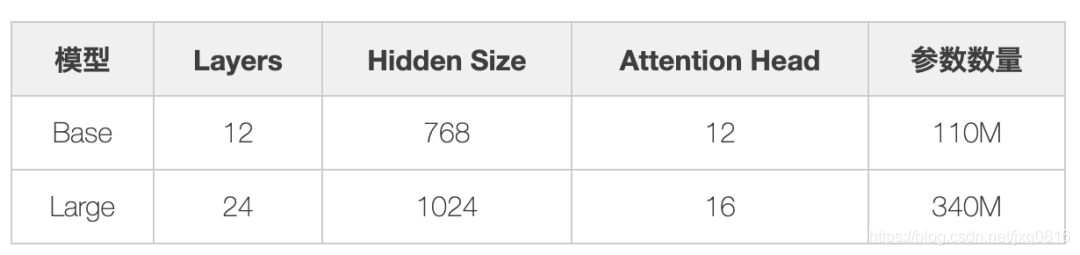 如表1所示,根据参数设置的不同,Google 论文中提出了Base和Large两种BERT模型。
