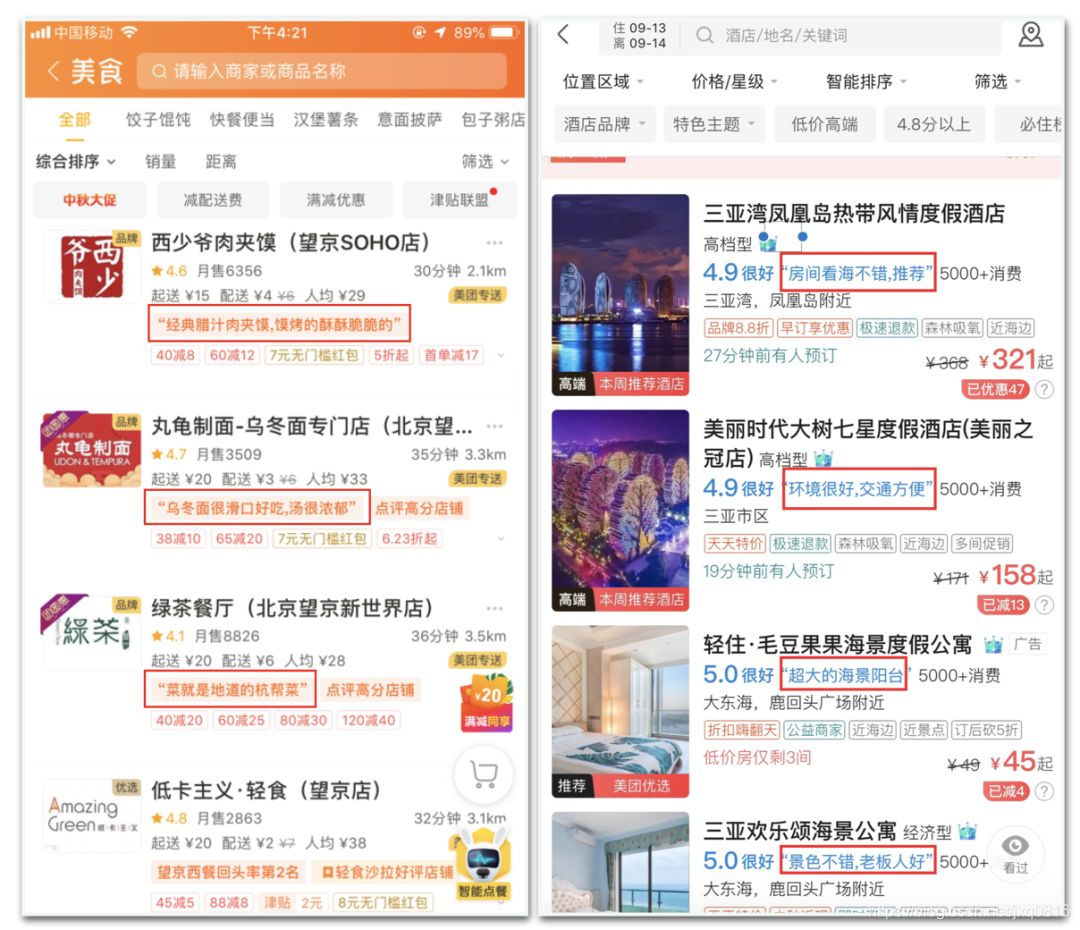 图12 外卖和酒店场景下推荐理由