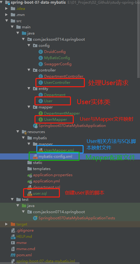 我们基于之前创建的项目spring-boot-06-data-druid 来创建spring-boot-07-data-mybatis项目