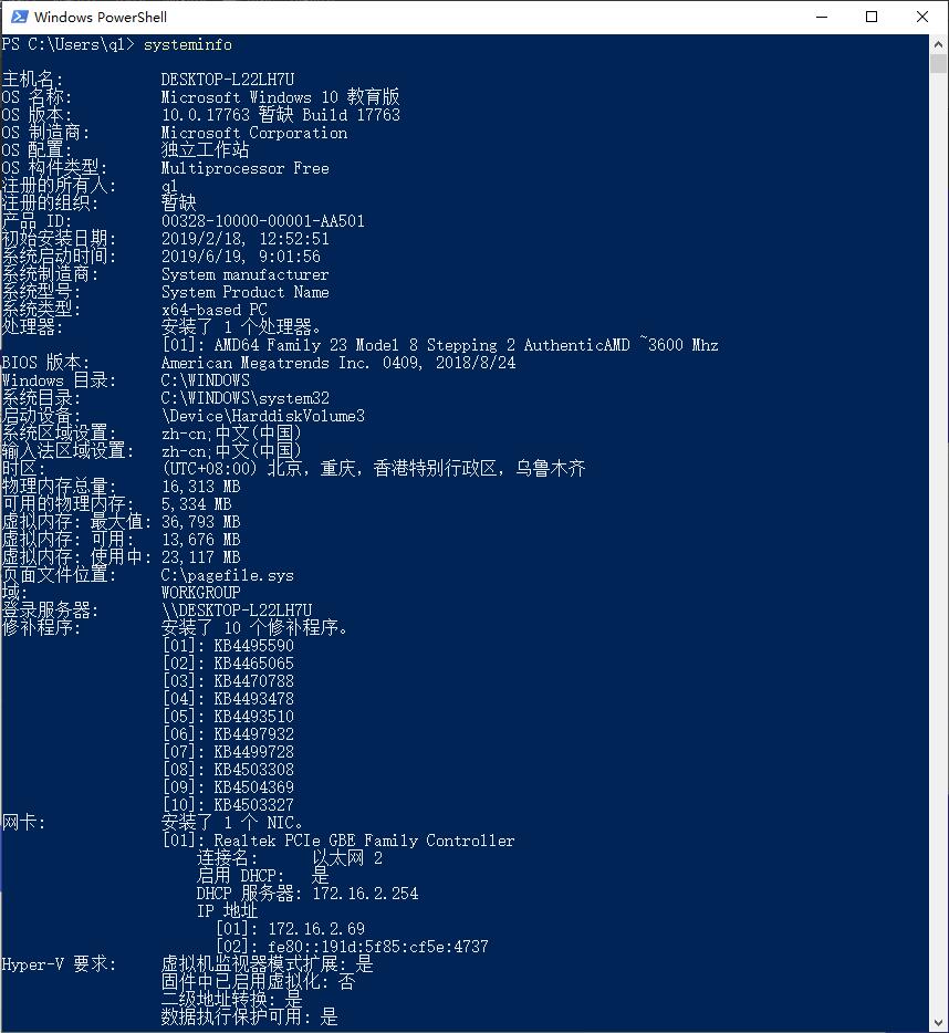Windows必须支持虚拟化,可以执行“systeminfo”命令来确认。如果支持虚拟化,则【Hyper-V要求】一栏如下图所示: