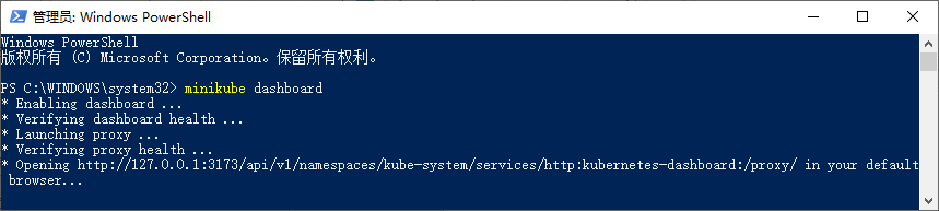 成功启动Minikube之后,我们就可以通过以下命令来打开Minikube可视化面板: