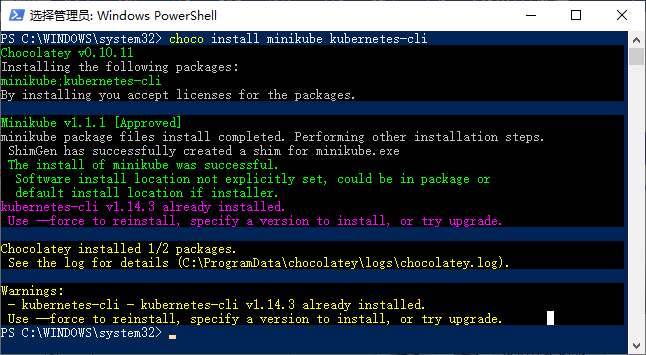 PS C:\WINDOWS\system32> choco install minikube kubernetes-cli