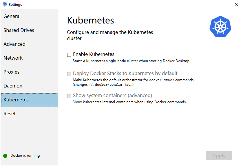 在Windows 10下,我们还可以使用docker-desktop来启用k8s,不过由于网络的原因,并不是很推荐: