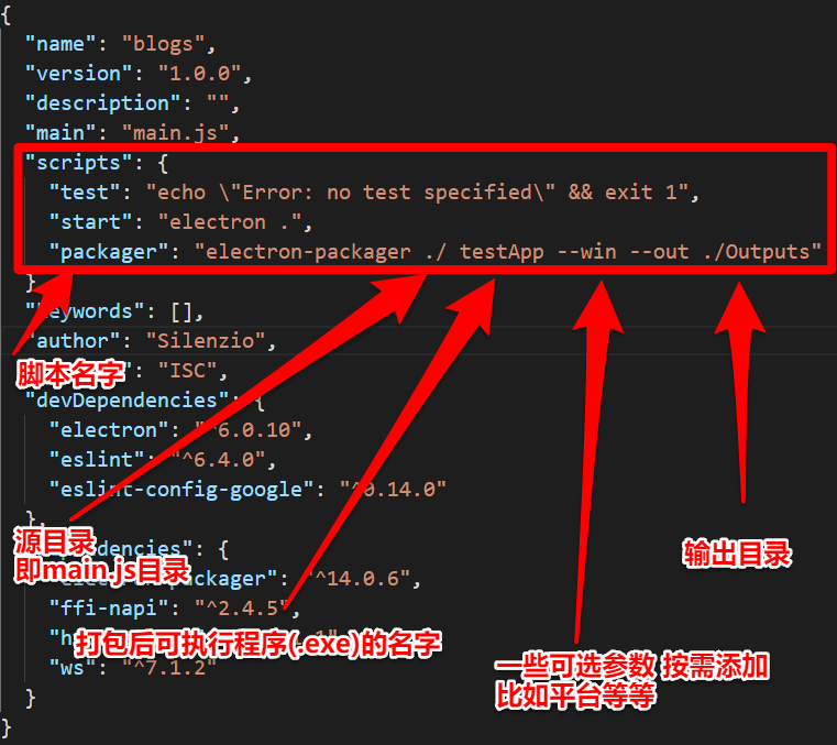 "packager": "electron-packager ./ testapp --win --out ./outputs"