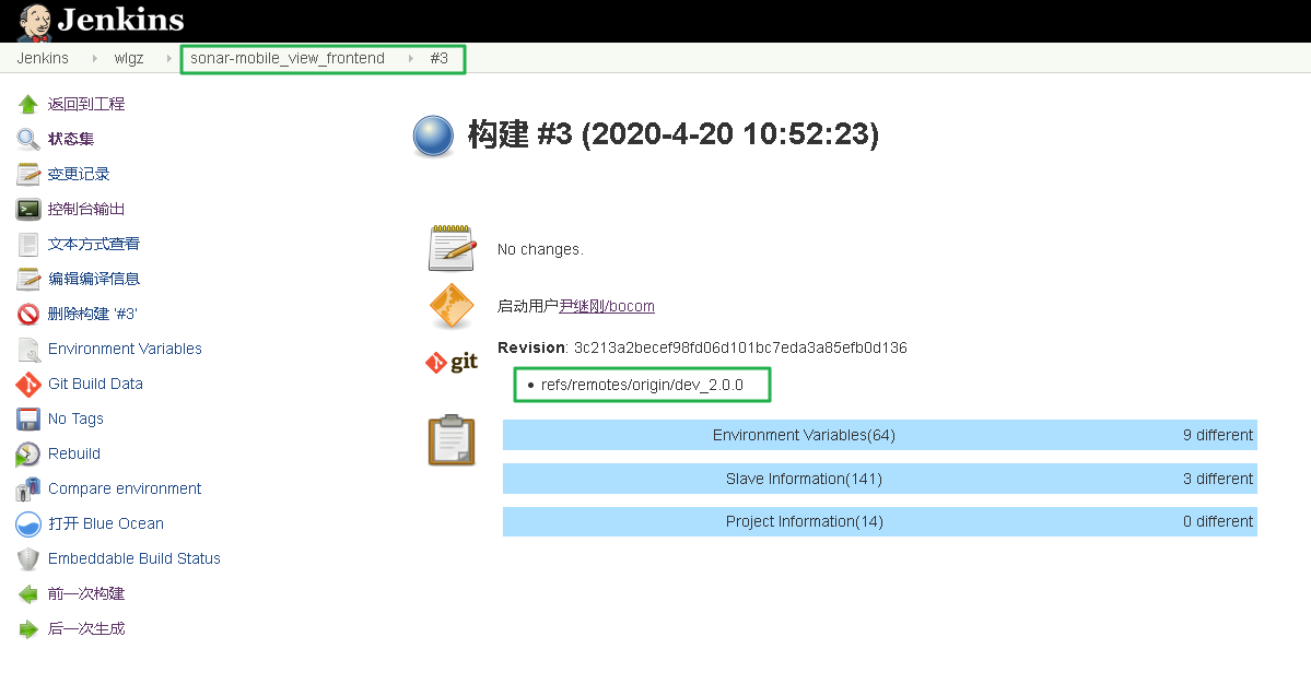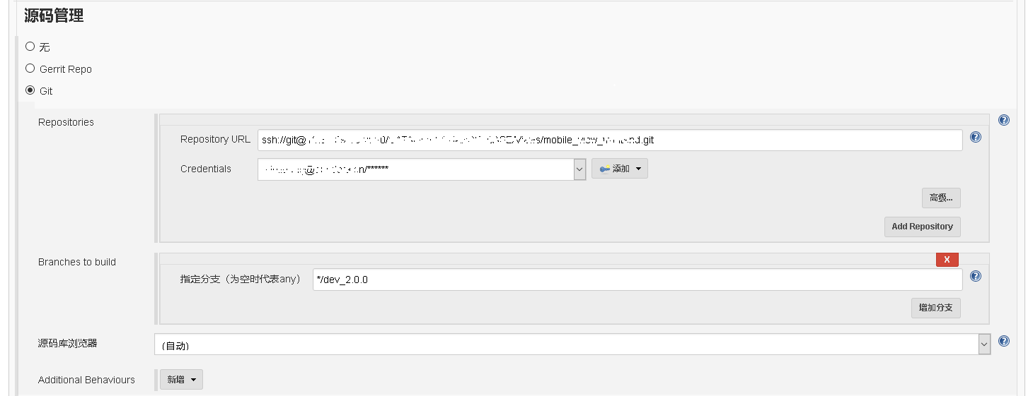 Jenkins 下载项目代码,下载研发分支 dev_2.0.0。