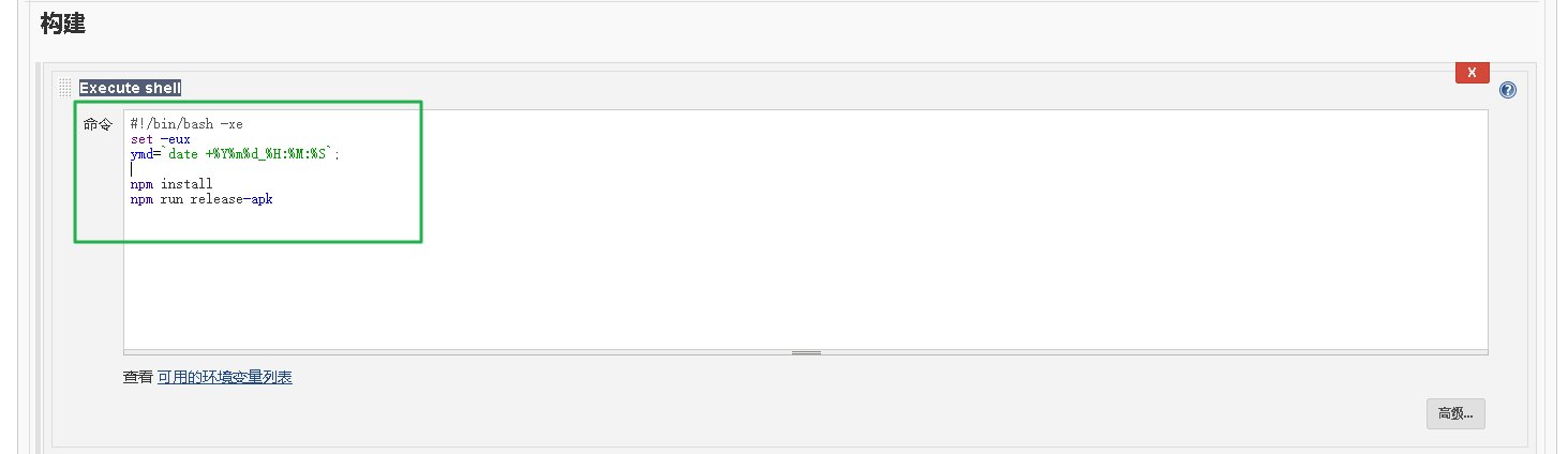 构建这里,选择增加构建步骤,添加一个 Execute shell 构建方式。