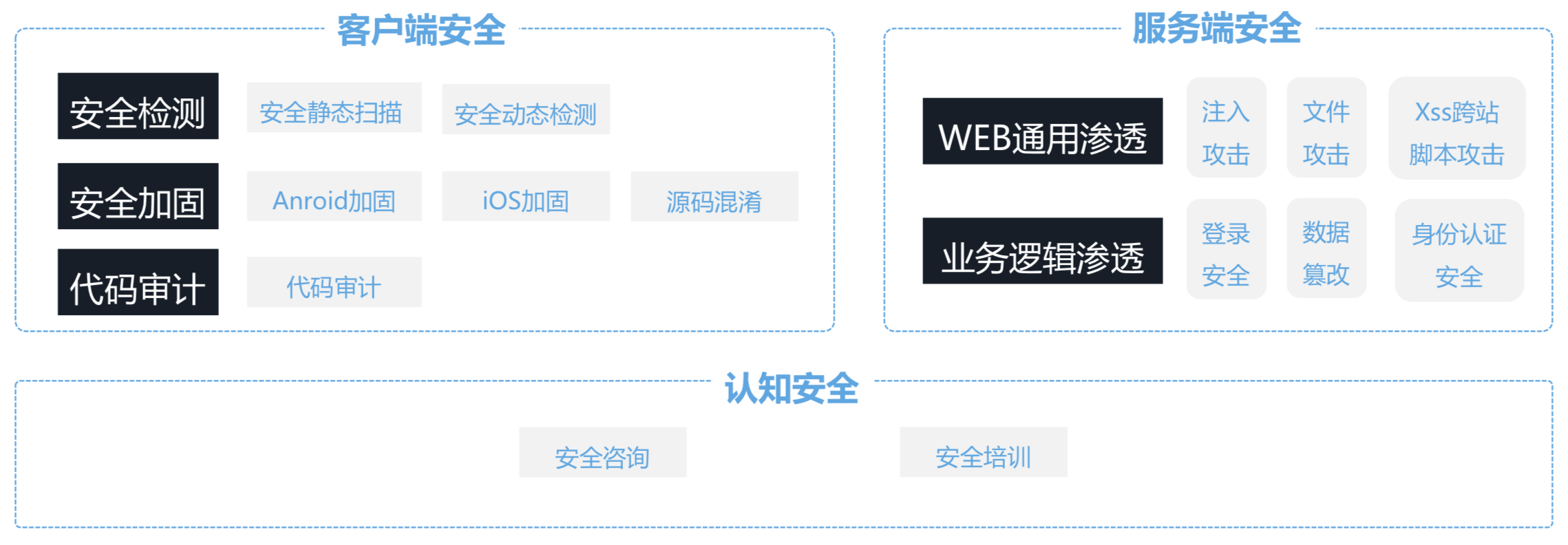 在企业中,操作人员的安全意识不足同样也会造成一些黑客的可乘之机。因此,腾讯WeTest推出安全咨询、安全培训、整包服务等业务安全项目。可以整体提升企业员工的安全意识,维护企业业务安全。