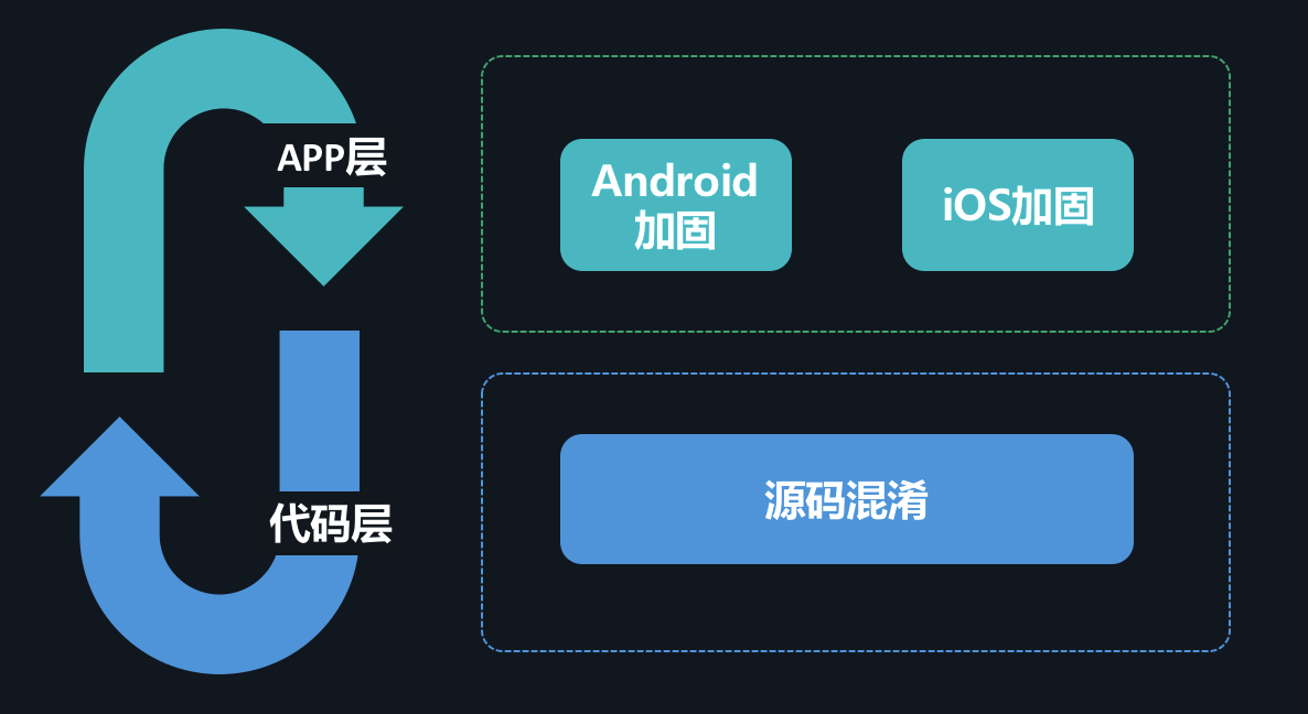 而源代码混淆,则通过对C/C+/OC/OC++等源代码做逻辑分支混淆和控制流平坦化,实现对源代码及业务逻辑的隐藏加密,可用于协议、密钥生成,以及自研算法等核心代码的自动化混淆保护。