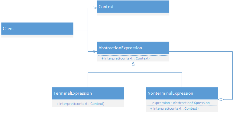 顾名思义,解释器模式就是定义一种语法,并提供一个解释器,客户端可以使用该解释器来解释这个语句来解决问题。例如写文档常用的Markdown语法,可以用-来表示无序列表,用---来表示下划线。通过解释器模式对这种经常使用到的事物,将其定义为一个简单的标识,以便于我们使用。