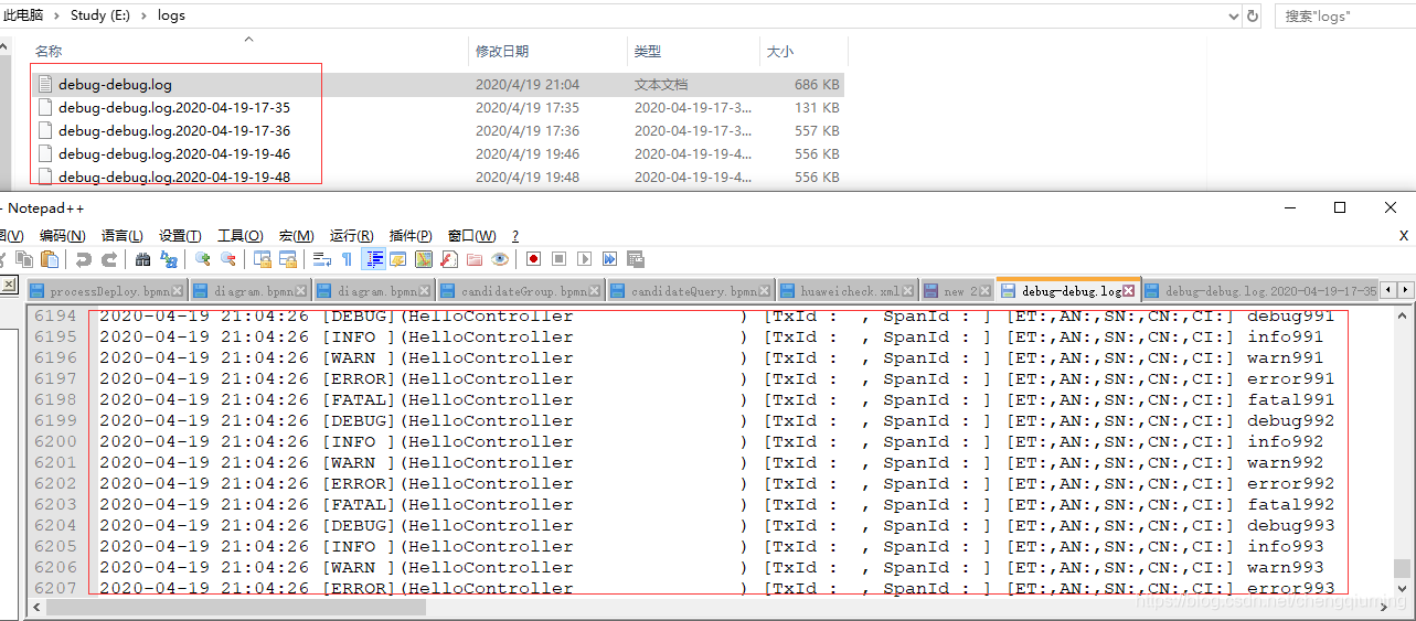2020-04-19 21:04:25 WARN  HelloController:69 - warn1