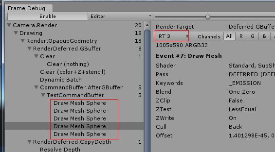 Camera.main.AddCommandBuffer(CameraEvent.AfterGBuffer, mCacheCommandBuffer);