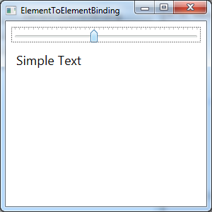 为理解如何将一个元素绑定到另一个元素,下面创建一个简单的示例。该示例窗口包含了两个控件:一个Slider控件和一个具有单行文本的TextBlock控件。如果向右拖动滑动条上的滑块,文本字体的尺寸会立即随之增加。如果向左拖动滑块,字体尺寸会缩小。