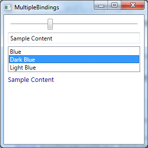 上面的示例仅包含一个绑定,但如有必要,可设置TextBlock元素从文本框中获取其文本,从单独的颜色列表中选择当前前景色和背景色等等,下面是一个示例: