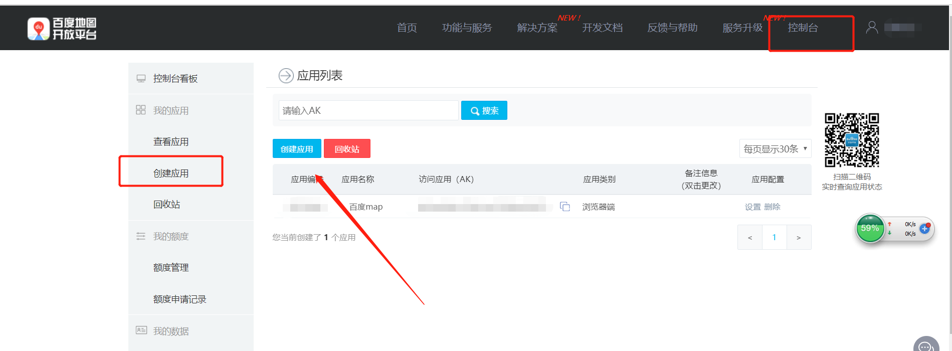 如图:首先在地图上方有一个筛选条件,总体难度还好吧,虽然有点bug(哈哈),还是能用的!这个地方略过,主要看地图,首先我们需要先申请一个 百度地图ak,