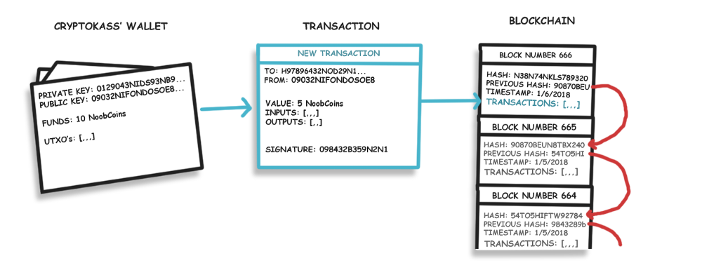 在上一篇文章中,我们已经创建了一个可信任的区块链。但是目前所创建的链中包含的有用信息还是比较少的。今天,我将会用交易信息来替换之前的 data 内容,我将会创建一个简单的加密货币,叫作 “noobcoin”。