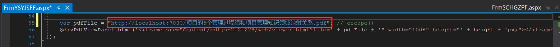 var pdfFile = "http://localhost:8033/PDFTest/Pdf/项目的5个管理过程组和项目管理知识领域映射关系.pdf";