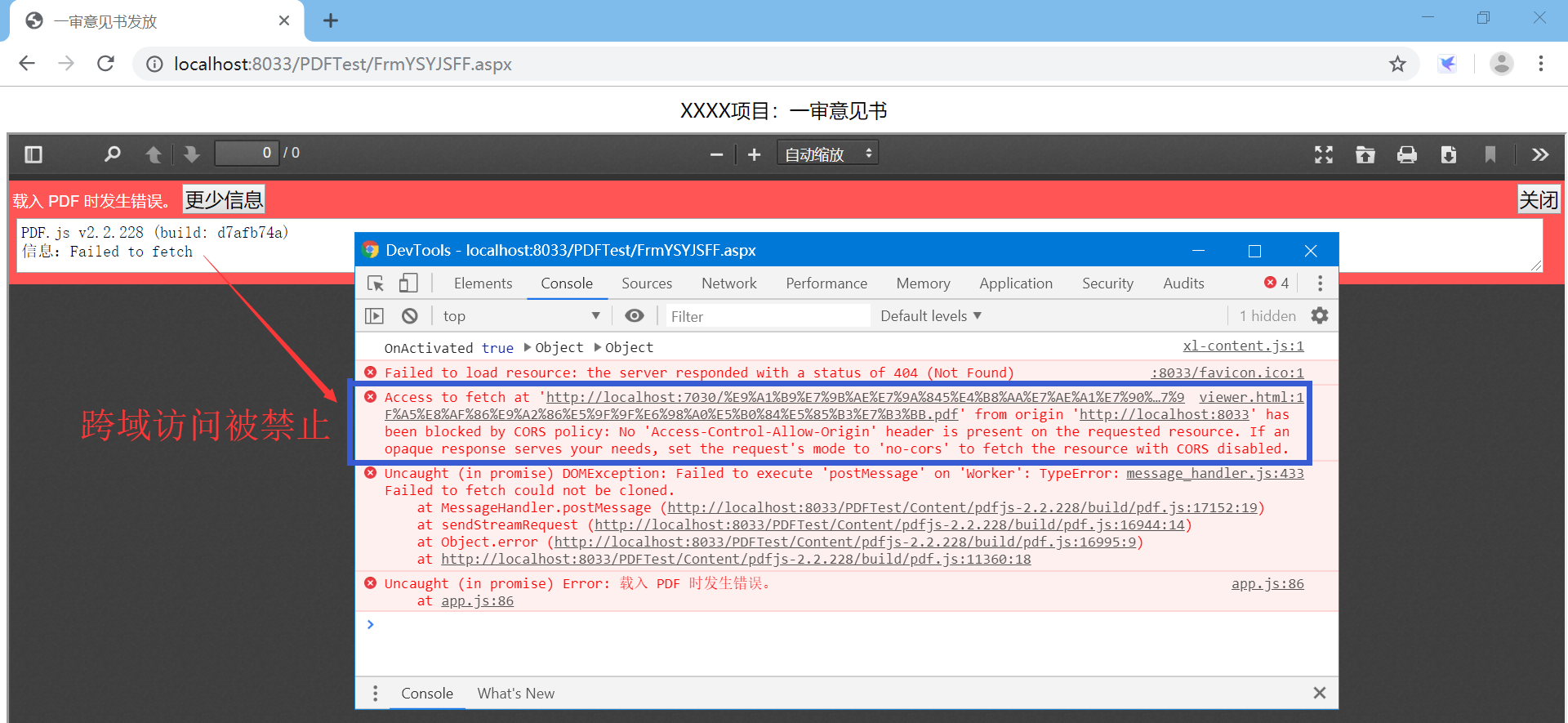 访问则出现如下错误。提示:跨域访问被禁止。
