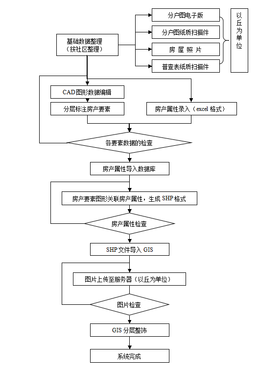房产数据建立房产地理信息系统的作业流程,见图1。