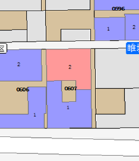 导入房产GIS系统的图形只有丘面、幢面,还要把房产基础图行政区划层、道路层、水系层、植被层逐层提取构面,叠加图幅结合表,叠加范围内航飞影像图,在房产GIS的图形上标注兴趣点,设置各个要素颜色、样式、显示等级等,见图3。