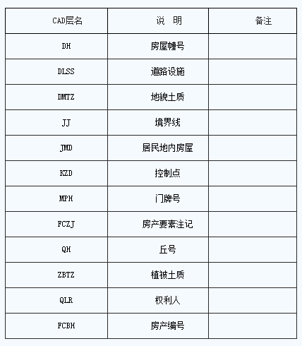 结合房产地理信息系统的实际需要,基础图形数据划分为以下图层,见表1。