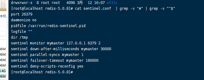 执行命令: cat sentinel.conf | grep -v "#" | grep -v "^$" > ./conf/sentinel-26379.conf