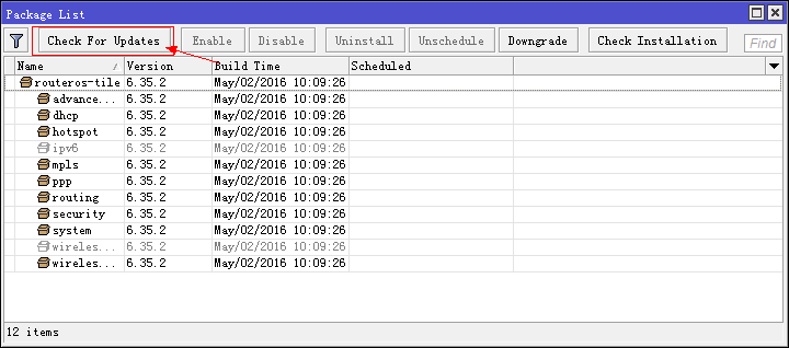- 升级RouterOs,为什么放这一步,因为之前路由器上不了网啊:System->Packages