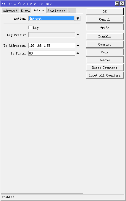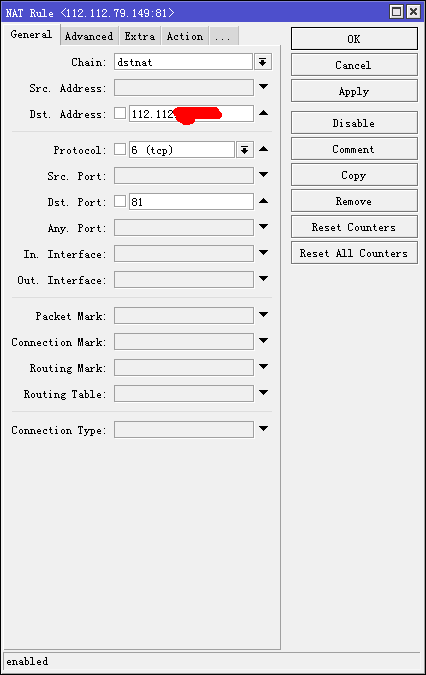 然后别忘记还要升级System->routerboard 点击upagrede,然后System->reboot - 最后映射80端口到web服务坑较多,因为adsl家庭宽带的80端口是被运营商关闭的,所以下面改成了81端口,具体参考:http://wk.baidu.com/view/fab73ec358f5f61fb7366667?pn=2&vw=all&pu=