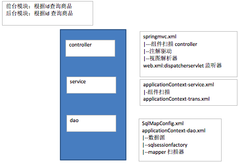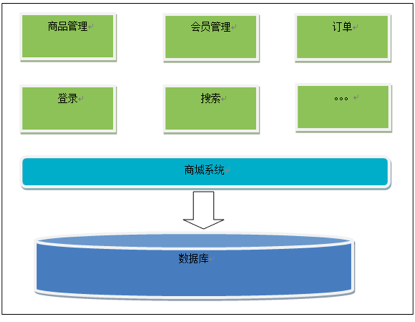 单体架构即所有系统功能和模块基于MVC的设计模式耦合在一个单体服务器单元中。基于传统的MVC思想,单体应用基于前后端分离的原则,通过Model、Control和View共同来完成一个特点的服务请求。这种传统的架构模式带了了多人团队合作、代码更新和维护、持续部署方面的困难,更重要的是,这种架构无法支持互联网行业对高并发的需求。下图为一个典型商城应用的单体架构及其SSM实现架构: