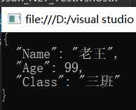 string jsonStr = "{\"Name\": \"老王\",\"Age\": 99,\"Class\": \"三班\"}";