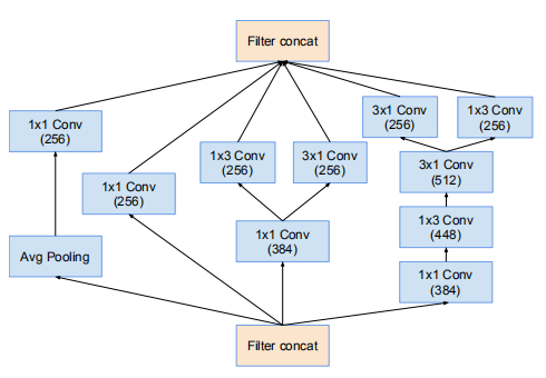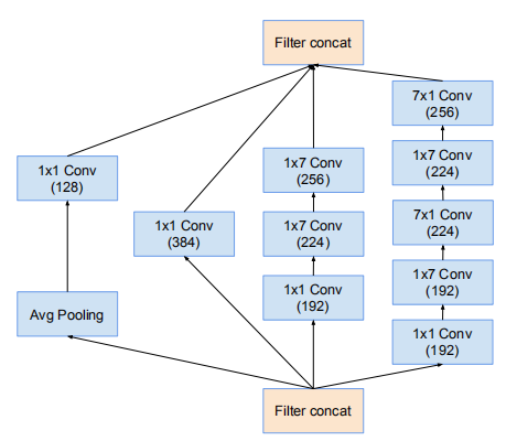 Inception-v4网络的17 * 17 网格模块,对应Inception-v4的Inception-B