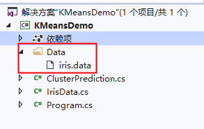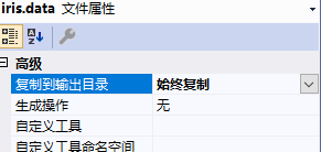 将iris.data文件放到Project下的Data目录中,同时右键iris.data,设置为:始终复制