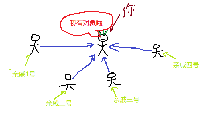 我们来解析一下上图,你===发布者,亲戚===订阅者 ,蓝色箭头==订阅