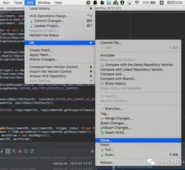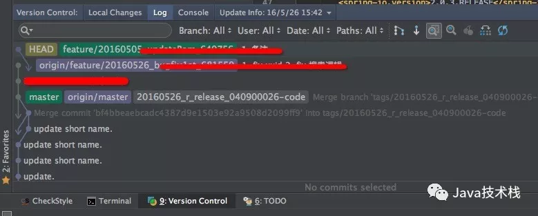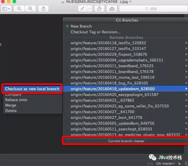 在IntelliJ IDEA右下角有一个git的分支管理,点击。选择自己需要的分支,checkout出来。