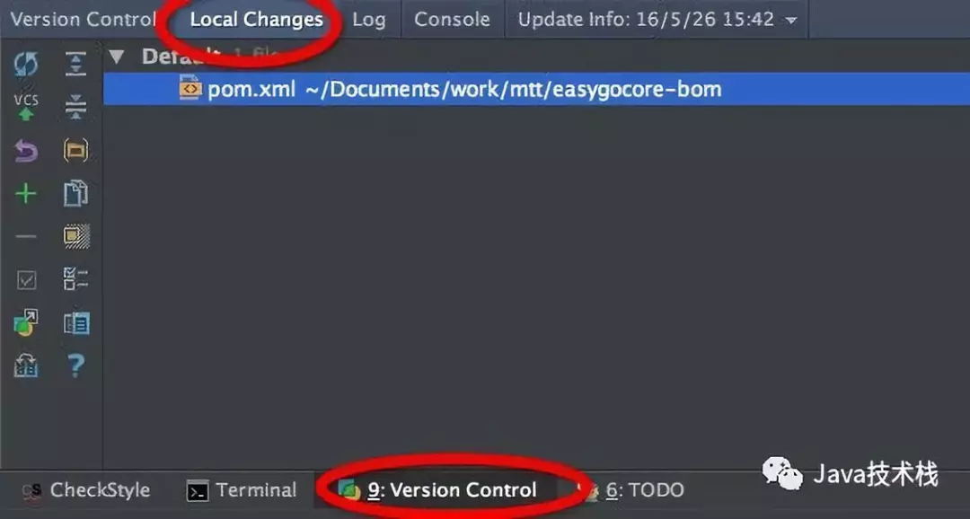随便修改一下pom.xml文件,其修改的文件会显示在Version Control中的local changes下。