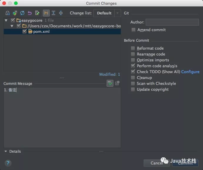 git commit:将库跟踪区改变的代码提交到本地代码库中