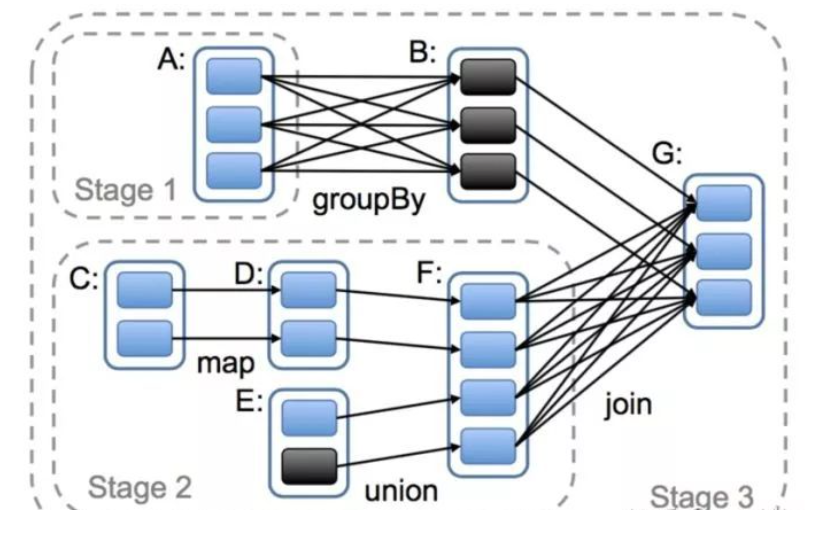 Task 一个 Stage 内,最终的 RDD 有多少个 partition,就会产生多少个 task。看一看图就明白了,可以数一数每个 Stage 有多少个 Task。