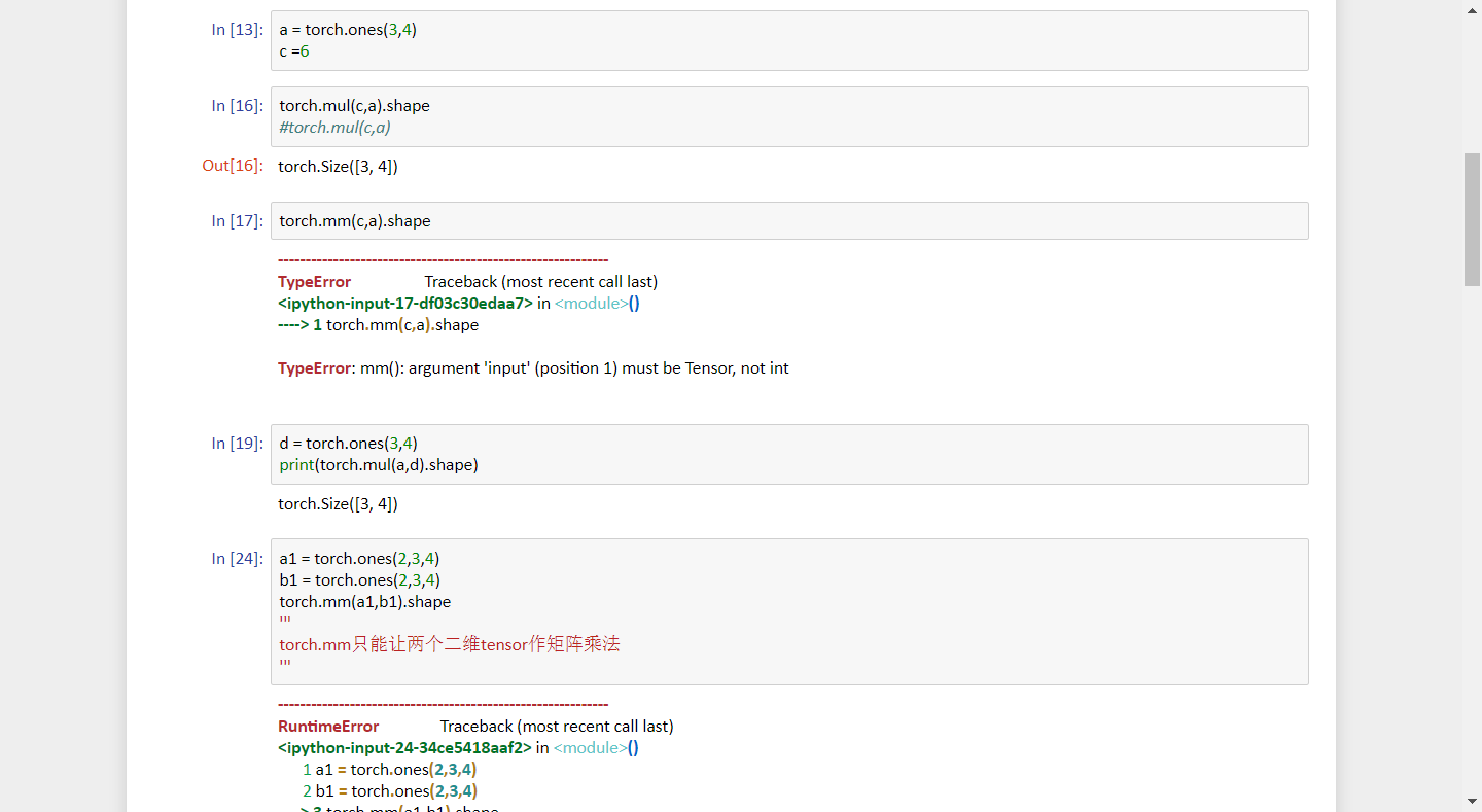 - torch.mm只能让两个二维tensor作矩阵乘法