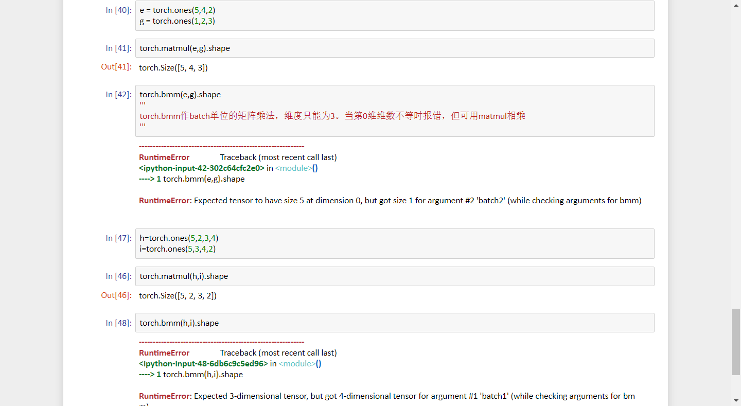 - torch.bmm作batch单位的矩阵乘法,维度只能为3。当第0维维数不等时报错,但可用matmul相乘
