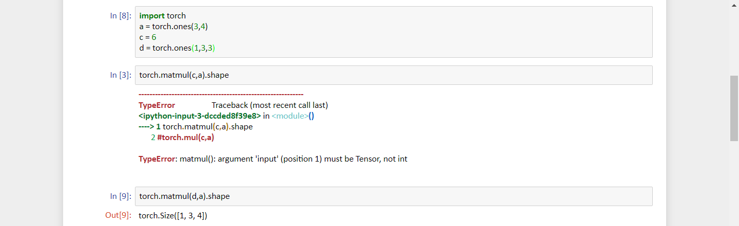 - torch.matmul 正常的矩阵乘法运算,两个输入必须都是Tensor