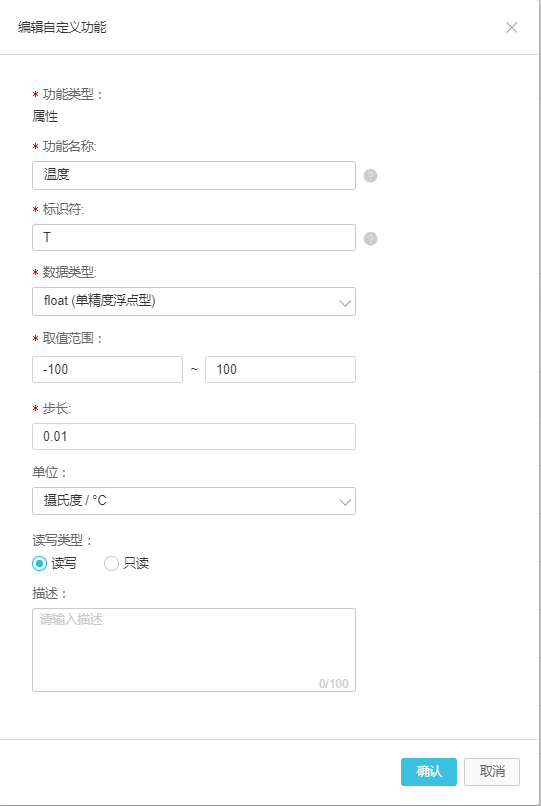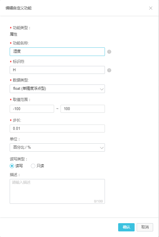 a.自定义属性添加,添加两个自定义功能(温度和湿度),创建模板请见图1-1