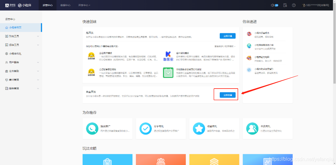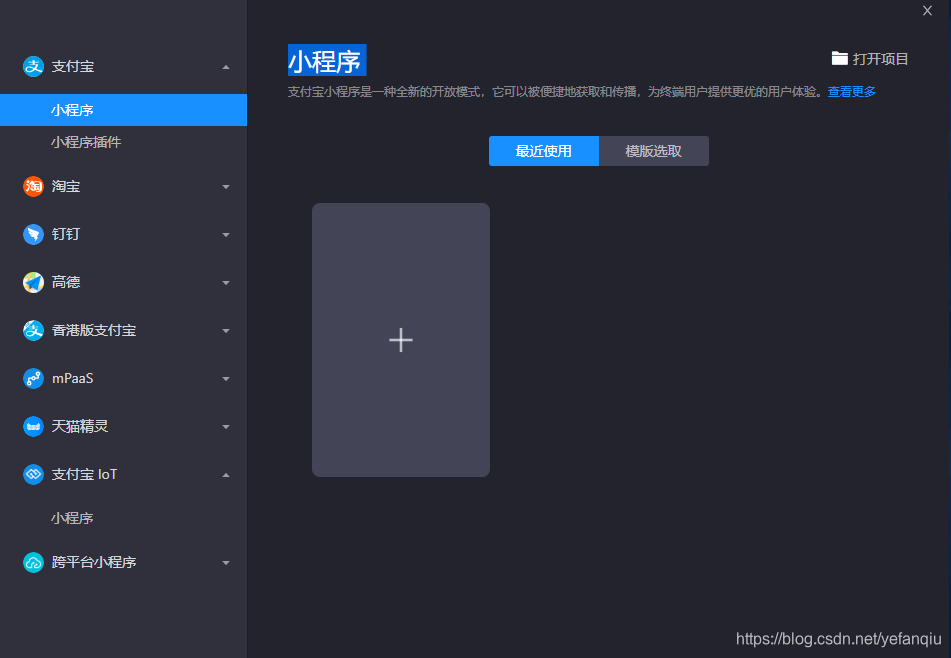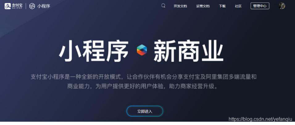 下面我们讲一下支付宝小程序开发,入口链接:https://mini.open.alipay.com/channel/miniIndex.htm