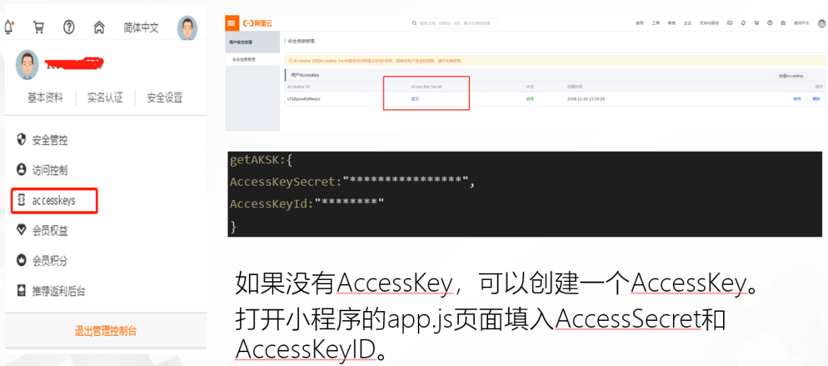 要对接阿里云物联网平台,第一步需要配置AccessKey。如下图: