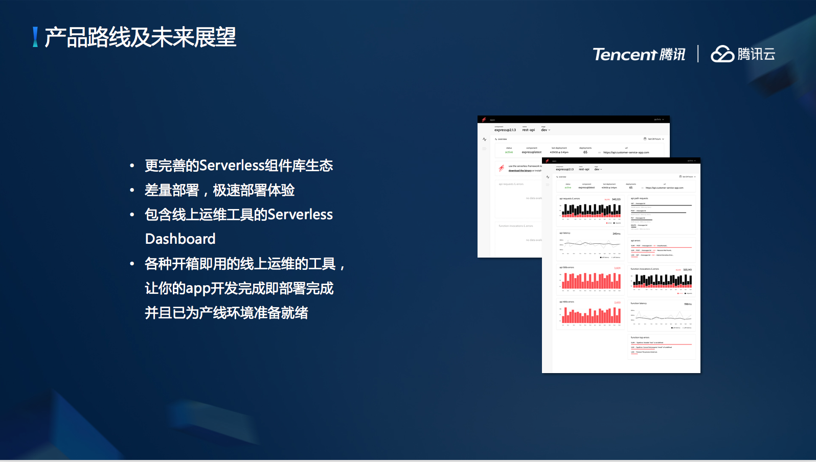 第三位分享嘉宾,来自 serverless.com 中国区研发的负责人 Ke Huang 老师,Ke Huang 老师分享了 Serverless Framework 的演进,从 plugin 到 component 再到 platform,提到未来 serverless 产品路线将提供更完善的 Serverless 组件库生态,提供差量部署,极速部署体验,包含线上运维工具的 Serverless Dashboard,以及上线各种开箱即用的线上运维的工具,让开发者开发完成即部署完成并且已为产线环境准备就绪。