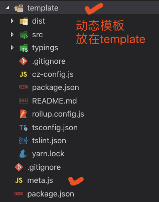// 我们把所需文件放在源文件的template目录下,其他一些如测试放在外面。初始化一下metalsmith