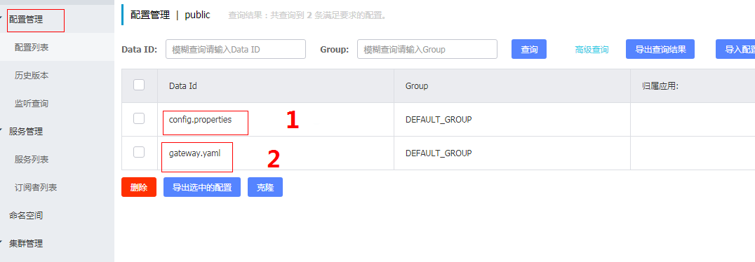 (3)配置管理,这里配置了两个,第一个是测试用的,测试了动态获取,第二个是11服务器上springcloud gate的配置文件。