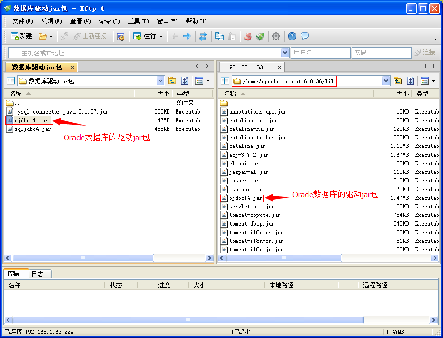1、将Oracle数据库的驱动jar包上传到tomcat服务器的lib目录
