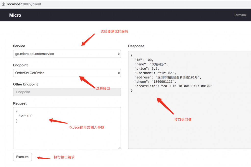 这里是跟命令的调用 rpc 调用是相同的。 不是 http api 接口。 来源:oschina链接:https://my.oschina.net/u/4326852/blog/3420934 标签 go-micro