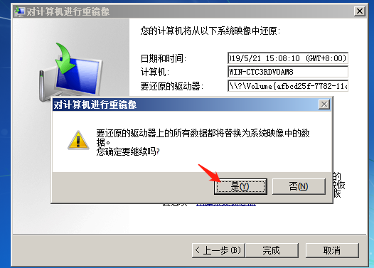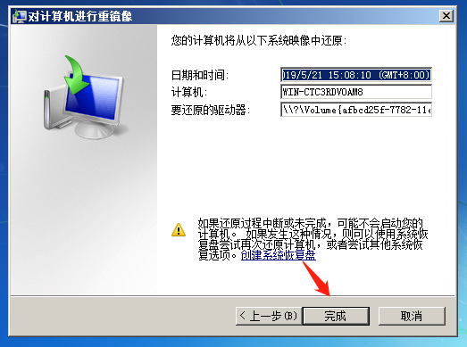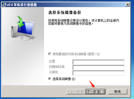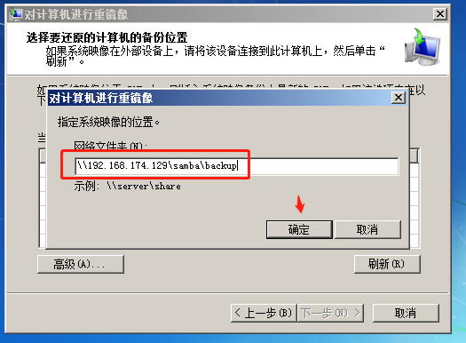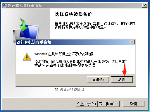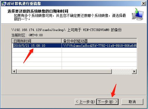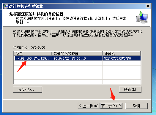 因为我是共享到其它服务器,所以这里会提示,在本计算机找不到映像文件。如果你备份到本地服务器就可以识别到。