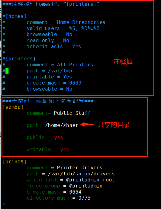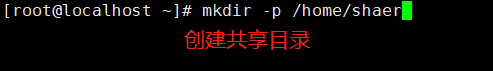 配置完毕后保存就好,创建一配置文件指定的目录“/home/shaer”创建完成后,赋予权限。