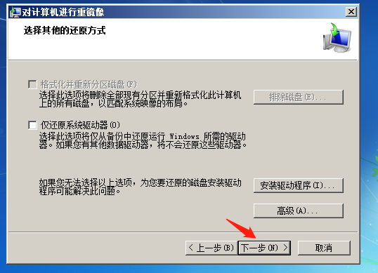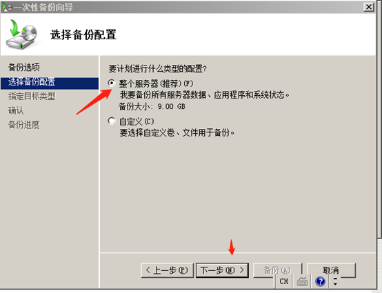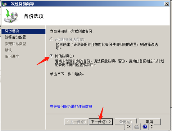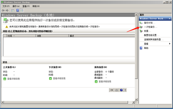 6、因我公司这台服务器就安装了几个服务,没有数据写入,所以选择“一次性备份”就够了,当出现故障时恢复就好了。
